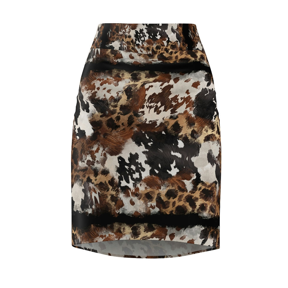 Turquoise Cowhide & Leopard - Women's Pencil Skirt