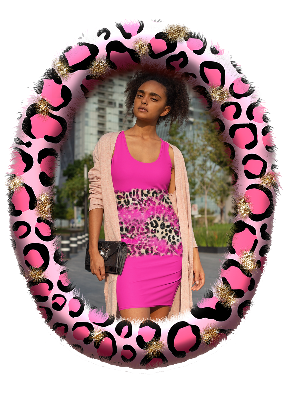You'll be as cute as a kitten in this feminine and stylish, yet really comfortable dress. Hot pink infused with a soft grunge aesthetic combines the romantic look of a coquette style with a bold wild leopard print mid-section, embellished with flirty pink glitter and playful dainty hearts.